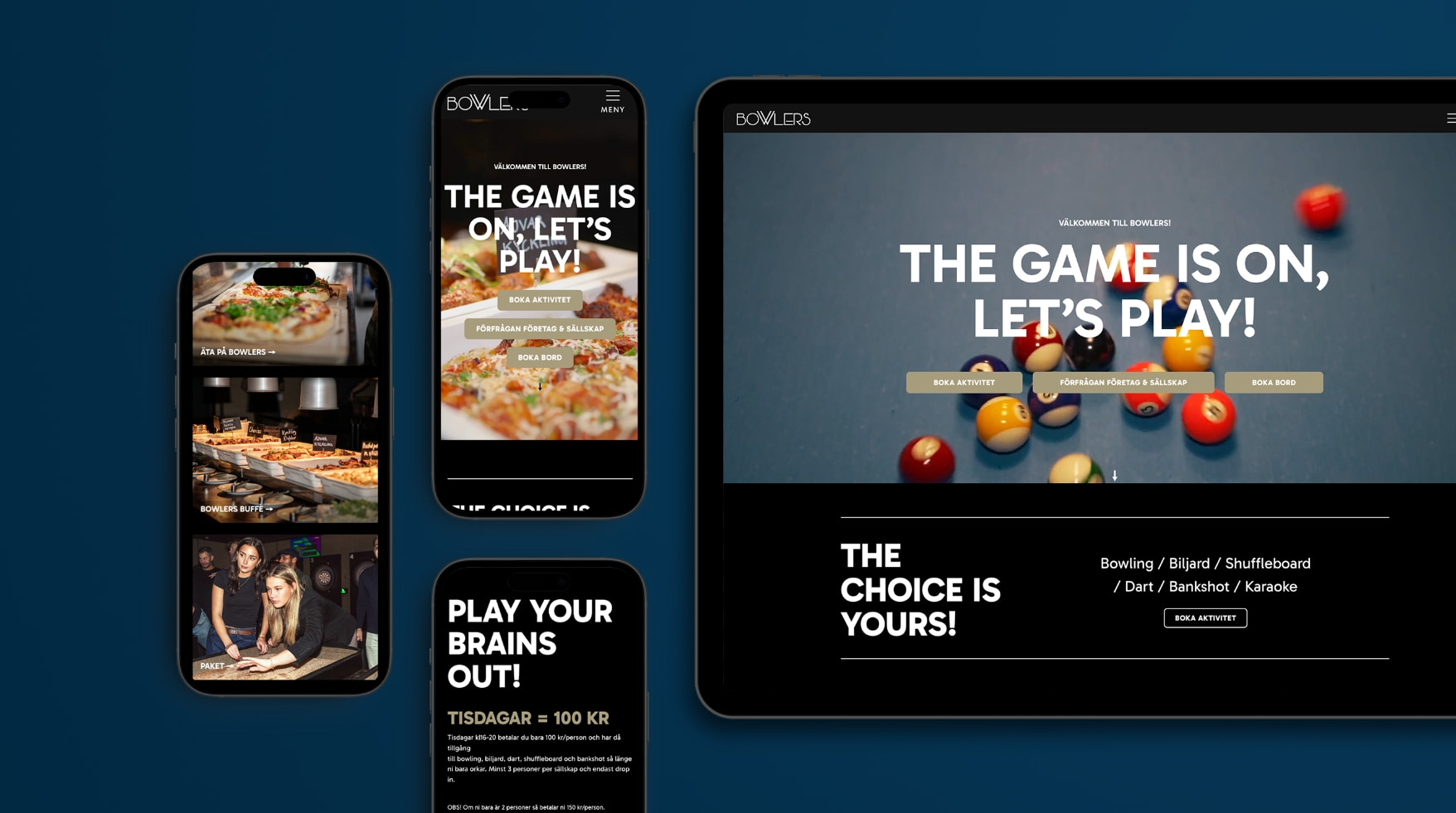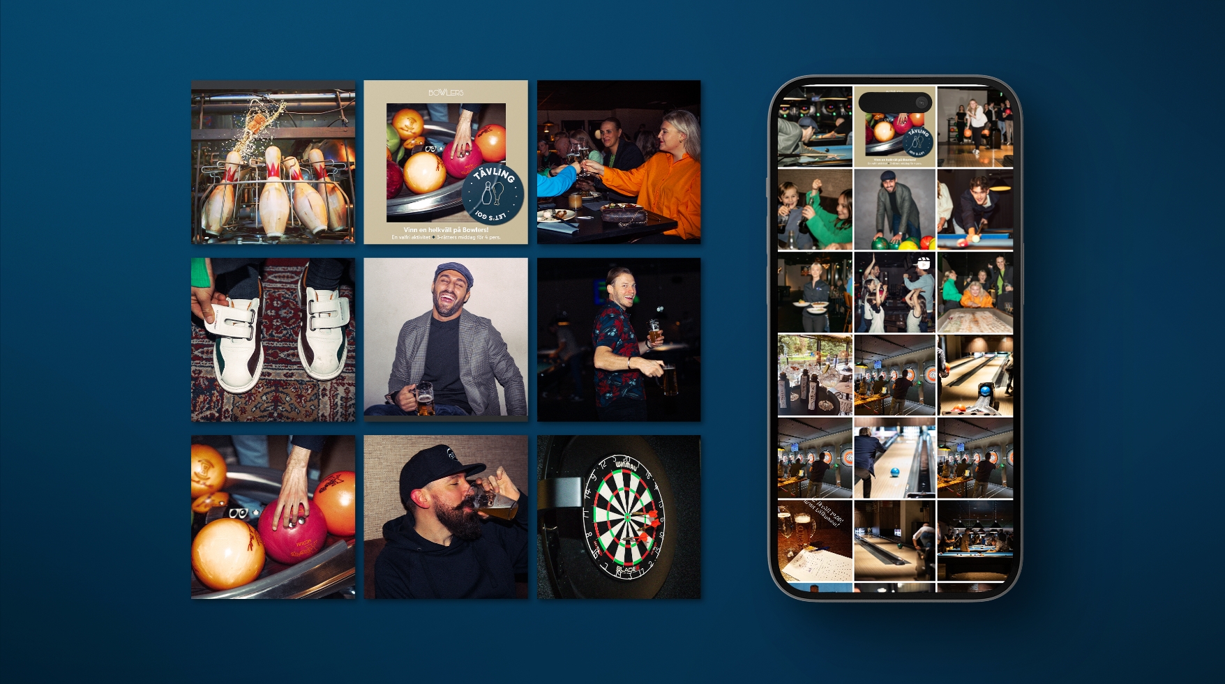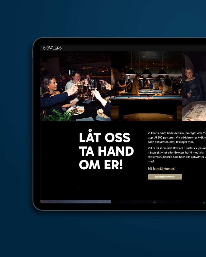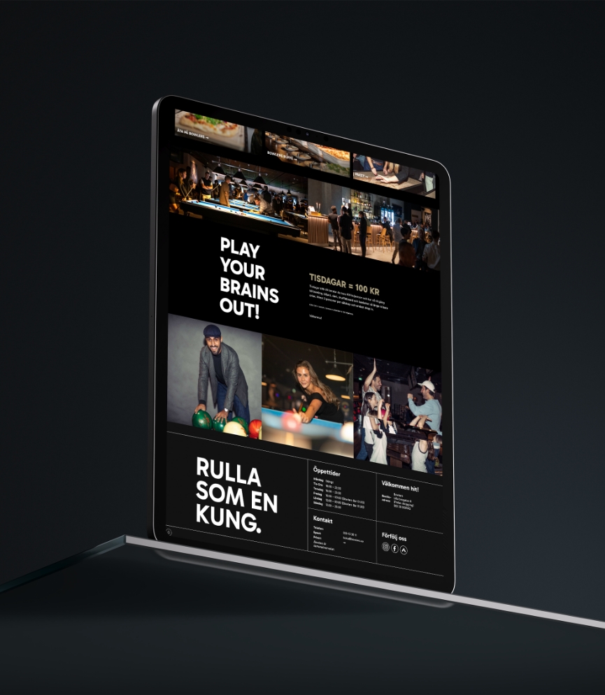 För att fånga glädjen, spontaniteten och skratten filmade och fotade vi aktiviteter och känslor under helkväll hos dem. För att skapa en tydlig profil togs färger, typsnitt, symboler och tonalitet fram. Tillsammans med ägare har vi fångat kärnan av Bowlers och arbetat ut det på en ny webbplats och i mallar som gör det enkelt att hålla en röd tråd i flera kanaler.