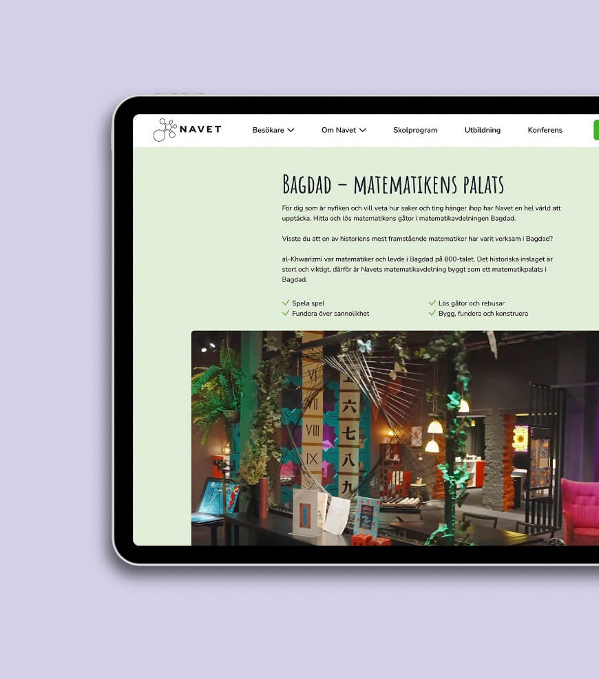 Brainforest fick i uppdrag att skapa en inspirerande och lättnavigerad sajt för Navet Science Center. Sajten skulle på ett tydligt sätt presentera verksamhetens erbjudande och skapa en förväntan inför besöket. Verksamhetens bredd och olika målgrupper skulle alla mötas inom ramen av samma landningssida. Som en del av projektet skulle även Navets lokaler fotograferas och filmas.